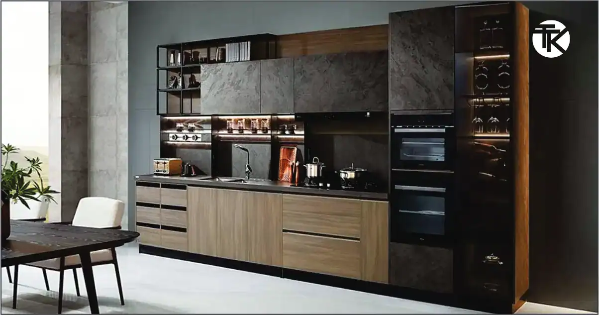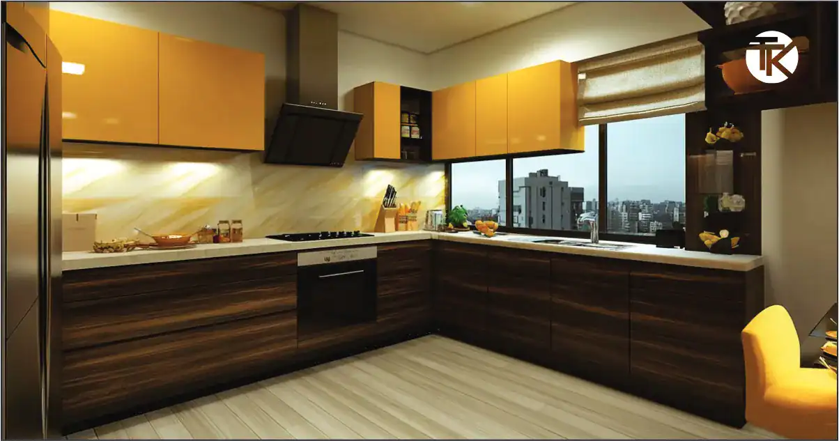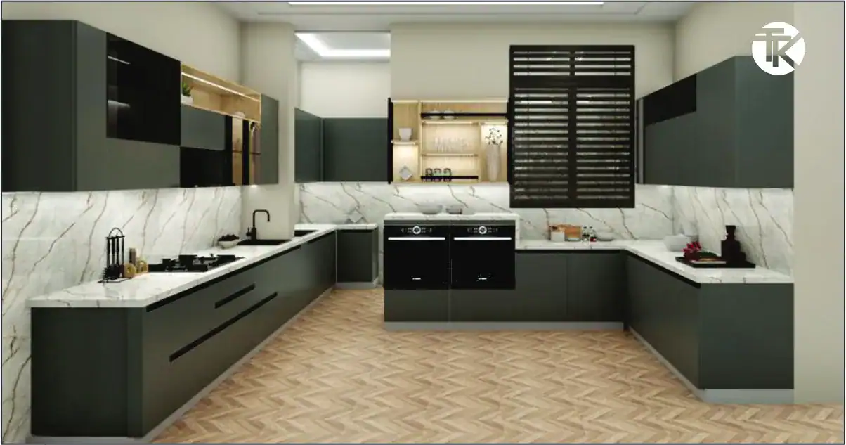 The L-shaped kitchen layout is one of the best kitchen layouts for open-plan homes. It naturally separates cooking and dining zones, creating a friendly and social environment. With efficient corner cabinetry and a balanced kitchen work triangle, this layout enhances movement, storage, and visibility. Its open flow suits small and large homes alike, offering modern kitchen layout ideas that blend function with comfort